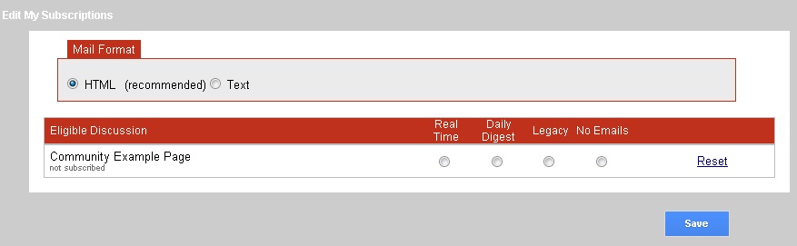 Once you have signed up for a discussion group, you will be prompted to select how often you receive emails. If you need to return at a later time to update your email selection select