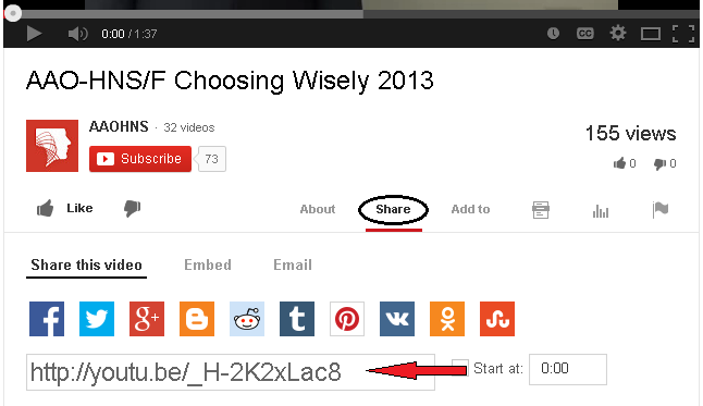 On the video’s page that you wish to share, under the video click the Share button, copy the link that appears and then paste the link in the Share Link box.